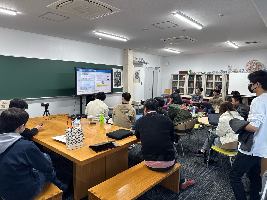 <講演概要> 形式検証に関する研究開発の説明をしました.自動運転の高度化に伴い,システムはグレーボックスとなりつつあります.また,産業界で主流のテスト検証には,網羅性の観点から原理的な課題が存在します.その解決手段として形式検証が有効ですが,ブラックボックスシステムや連続値・微分を含むシステムへの適用が困難という課題があります.これらの課題に対し,国立情報学研究所との共同研究を通じて取り組んでいる内容を紹介しました.自動車業界の重要課題に対して数学を活用して研究を行った具体例について学生さんから質問があったため,明確な数理との関係性を学生に示しました.